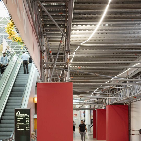 – Projekti on ollut meille perustekemistä, mutta haasteita on tuonut asentaminen tiloissa, joissa liikkuu jatkuvasti myös siviilejä. Kaikki tehtiin yötyönä ja aamuisin siistiä piti olla kello kuuteen mennessä, kun kaupat aukesivat. Työaika oli 00.00–06.00, kertoo Telinekatajan työpäällikkö Harri Kuusela.